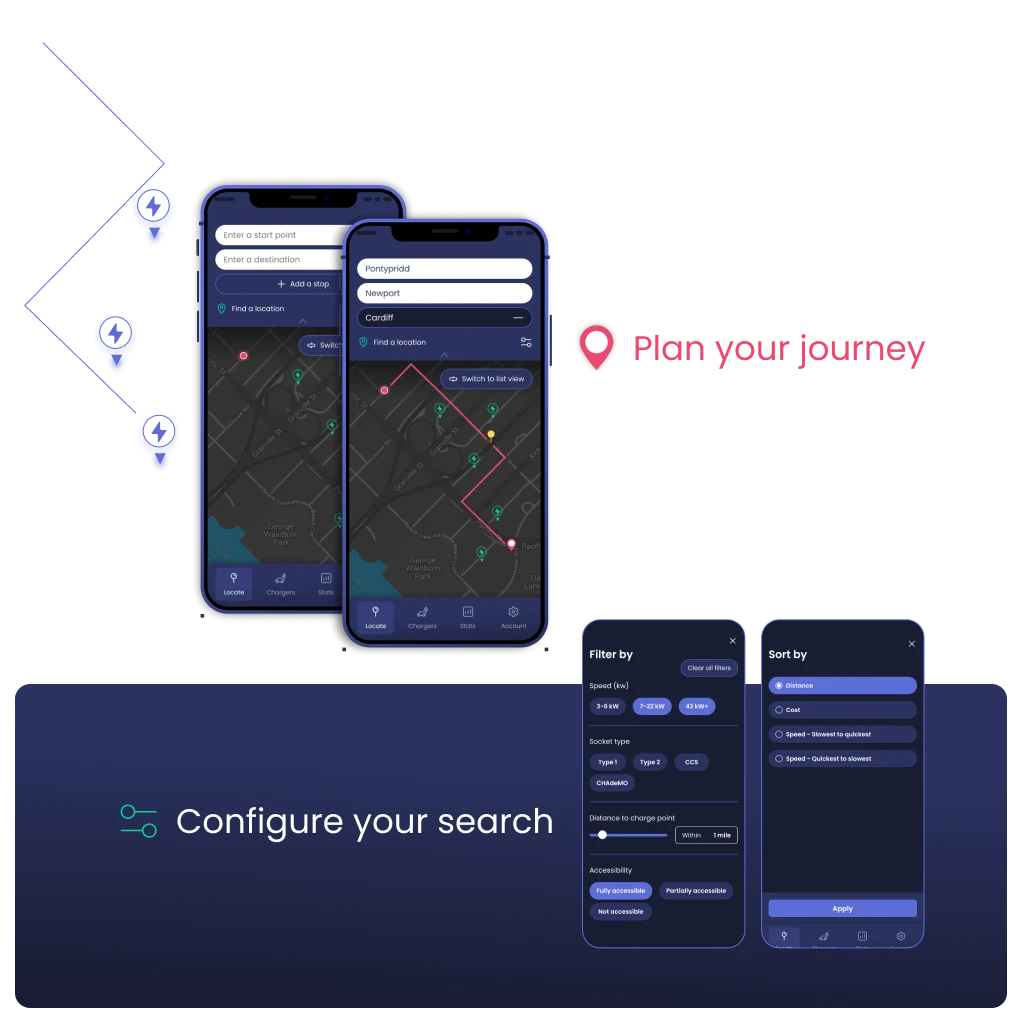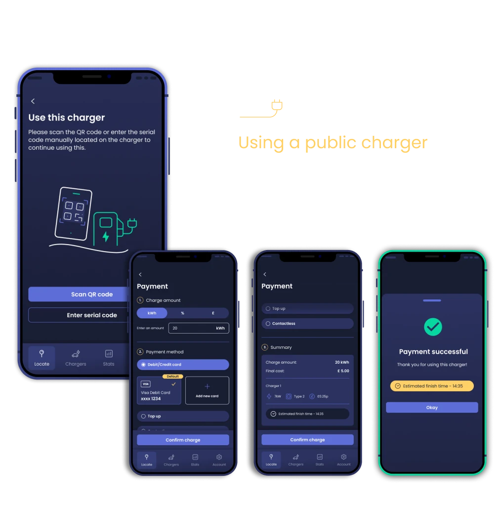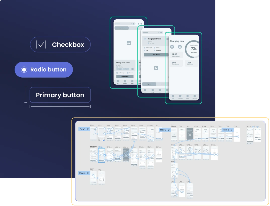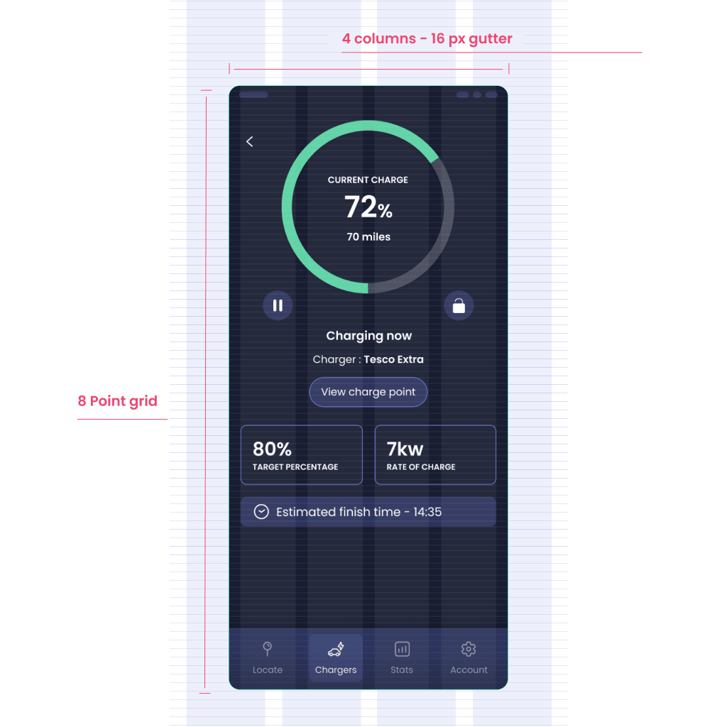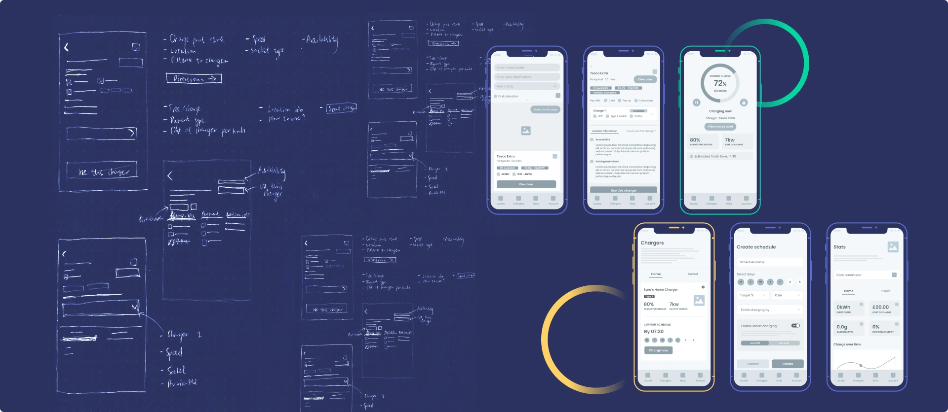To tie in with the modern vision of EV charging, we selected a bold and contemporary colour palette. Aside from just making the designs look good, it was crucial to consider whether our elements meet accessibility standards such as colour contrast and font size.